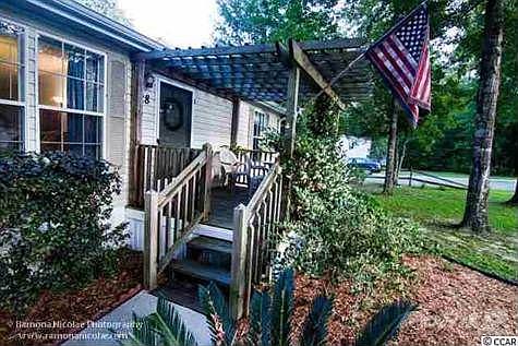 Located in peaceful and desirable Hawks Nest, this well maintained 3 bed 2 bath home with split floor plan and numerous upgrades sits on a beautiful oversized corner lot with large oak trees backing up to a nature area. Enjoy the outdoors on any of the multiple outdoor living spaces including front and rear porches, multi-level deck, and separate free standing deck next to the nature area. Conveniently located only 10 minutes from beach, Marsh Walk, Brookgreen Gardens, and only a mile to the Wacca Wache Boat launch yet has the peace and quiet of the country. A must see for anyone that loves the beach but not the crowds and noise.