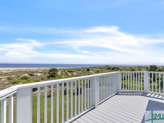 Jaw dropping, 180-degree, uninhibited views of the Atlantic Ocean from your back balconies. Maintenance free, renovated, and turn-key townhome with views of the historic Tybee Island Lighthouse. Ground floor features tandem garage, plenty of room for a vehicle and a golf cart. Behind the garage, a flex room that could be used as office or bonus room, plus rear ground floor brick porch. Enter the foyer and up the stairs to one great room, with amazing views. The kitchen features newer SS appliances, refreshed cabinetry, and wooden shelved pantry. Half bath makes for easy entertaining. Two suites upstairs, both with ample closet space and updated bathrooms, and their own private balconies. The upstairs primary balcony will have you wanting to stop and stare at the barges and shrimp boats coming into Savannah. All windows feature automatic hurricane shutters. This Tybee townhome is one of only 6 units, is closest to the ocean, and the HOA fee includes the flood insurance. Welcome Home!