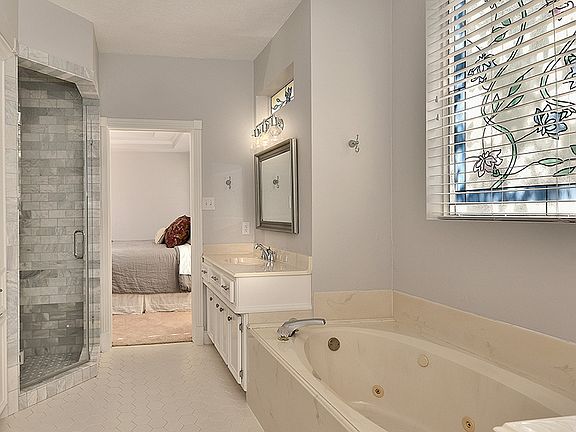 Custom built home by Ross Munger in the sought after central location of Shadow Lake surrounded by nature and tranquility. Positioned on an oversized cul-de-sac lot with towering trees and lush landscaping. Enter and see a beautiful staircase, soaring ceilings and classic millwork. Hardwoods throughout most of the first floor along with a cathedral ceiling in the dining and a double-sided remote gas fireplace in the living room and den. Open concept with the kitchen open to both the den but also to the formals making this layout ideal for entertaining. Custom cabinetry and high-end Thermador appliances compliment the kitchen. The primary suite has a connecting study with built-in bookcases with a view to the pool and back garden. Upstairs features a flexible layout with a game room and four secondary bedrooms. Abundant patio space and sparkling pool. Recent updates include the bathrooms, lighting and fans, shutters, water heaters, designer windows, interior and exterior paint.
