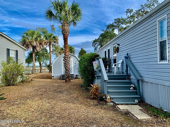 AN EXCITING NEW LISTING AT TANSI VILLAGE ON A TIDAL CREEK OVERLOOKING THE MARSH WITH A VIEW OF DATAW ISLAND IN THE DISTANCE. SUPER WELL MAINTAINED MOBILE WITH AN ADDITIONAL (NOT HEATED) 358 SQUARE FEET OF LIVING SPACE. TWO BEDROOMS, 2 BATHS WITH KITCHEN DINING AND LIVING, LAUNDRY ROOM, PANTRY, SINGLE CAR CARPORT, SHED FOR TOOLS AND YARD THINGS. COMMUNITY CLUBHOUSE, POOL AND DOCK. WON'T LAST LONG AT $245,000.