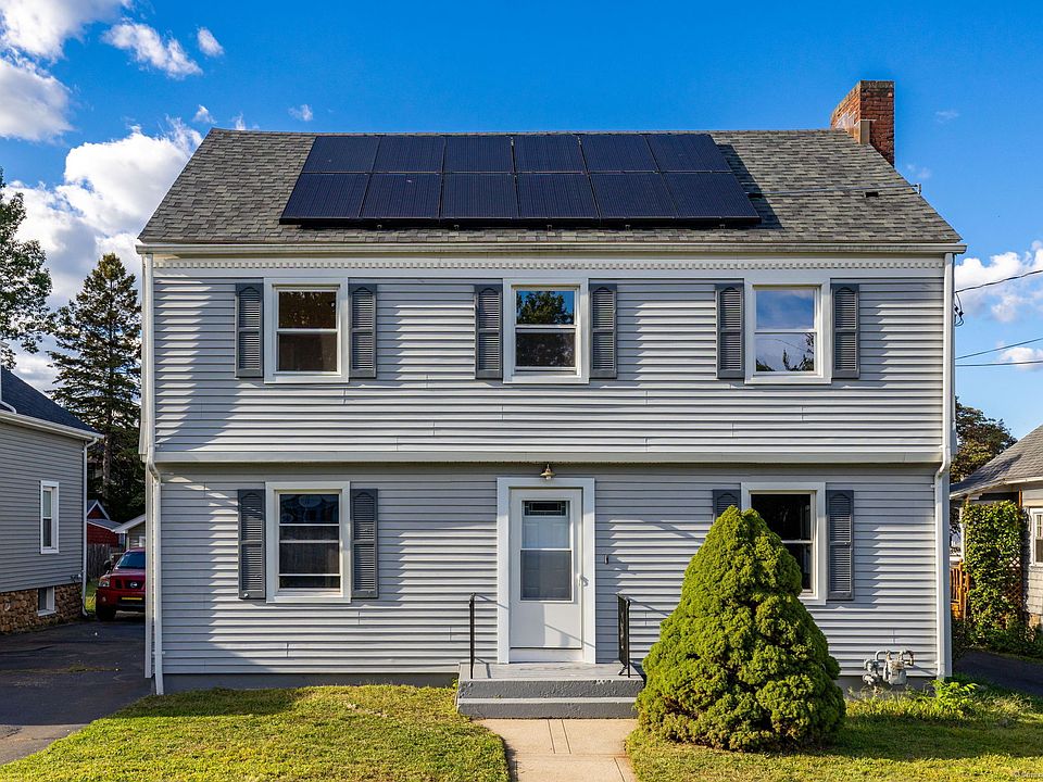 Welcome to 28 Tulip St, a beautifully remodeled home that blends timeless character with fresh, modern updates. Offering 3 large bedrooms and 1.1 baths, this home has been thoughtfully updated with fresh paint, refinished hardwood floors, new lighting, and a brand-new, fully remodeled bathroom. Entering the home you're greeted with a classic colonial floorplan, with a spacious living room complete with cozy fireplace, a formal dining room, and kitchen with ample cabinet and counter space for all your culinary needs. Upstairs, three spacious bedrooms and an abundance of natural light create a warm, inviting atmosphere throughout. The newly remodeled full bath completes this level. If you need additional space, enjoy the partially finished basement for living space while the walk-up attic and ample storage areas add convenience and flexibility. Outside, you'll find a newer roof for peace of mind and a 1-car detached garage. Natural gas heating and solar make this home energy efficient as well.With its combination of recent renovations, classic charm, and thoughtful layout, this home is truly move-in ready.