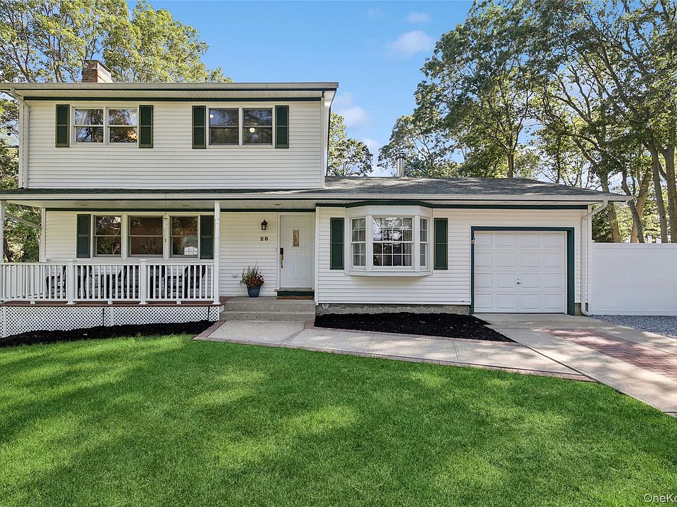 Welcome to this beautifully maintained Colonial set on nearly half an acre in Holbrook. This pristine 3-bedroom, 1.5-bath home offers a perfect blend of comfort and modern updates throughout. The inviting living room features a cozy fireplace and gleaming hardwood floors that were refinished 2 years ago, which flow seamlessly into the open-concept kitchen—renovated just 2 years ago with a spacious center island, quartz countertops, stainless steel appliances, wine fridge, and garbage compactor. Recessed lighting enhances the bright, airy feel of every room.
