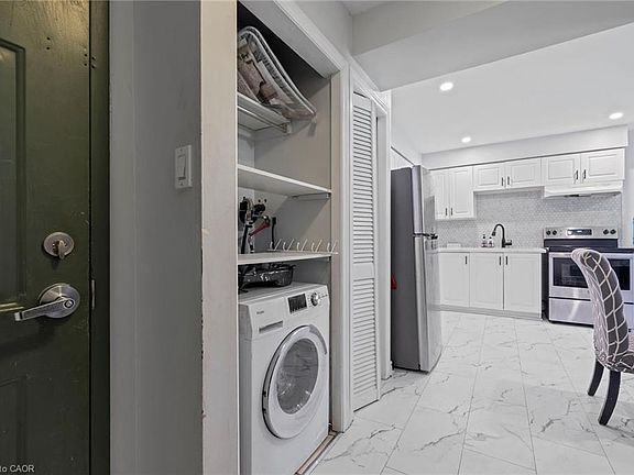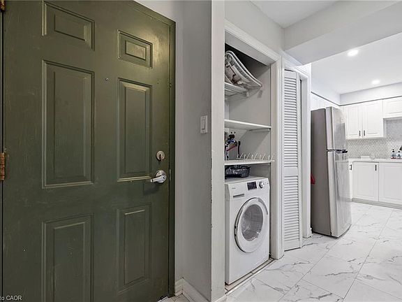 The main floor condo is all about simplicity, comfort, and connection. The bright, open layout with large windows and pot lights gives the space a welcoming, modern vibe , the kind you'll actually look forward to coming home to. The kitchen balances style and practicality with stainless steel appliances, a tile backsplash, and an undermount sink, while in-suite laundry, parking and a storage locker keep life running smoothly. The building itself is secure and well cared for, with monitored cameras, a new fence and a refreshed entrance. Efficient heating and cooling means you'll stay comfortable year-round without fuss. And when you step outside, everything you need is at your doorstep - Hamilton General, West Harbour GO, restaurants, shops and daily conveniences are all within walking distance. It's the kind of place where you can trade long commutes and high maintenance for more time enjoying the city around you. Whether you're a first time buyer, an investor, or just ready for easy living in a central, walkable neighbourhood, this condo is a smart move.