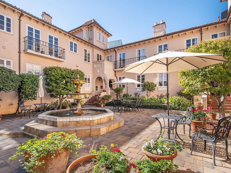 An architectural gem in San Mateo's prestigious Baywood neighborhood! This beautiful Spanish Mediterranean top floor corner unit features 2 bedrooms/2 full baths, oversized windows, refinished oak hardwood floors, high ceilings, intricate period moldings, and in-unit washer/dryer. With 1700s.f. of living space, the timeless interior showcases an inviting foyer that introduces the grand living room with fireplace, floor-to-ceiling windows, vaulted ceiling and adjacent sun porch/office area. The separate dining room is conveniently located next to an updated kitchen with stainless steel appliances, quartz countertops and white cabinetry. The building shares a lovely courtyard, gym and large recreation room on the lower level. Also included is a 1-car garage parking spot plus additional parking on the property when available. Premier location with a 96 Walkscore (Walker's Paradise) - steps away from downtown San Mateo, Central Park, Japanese Garden & Rose Garden, restaurants, cafes, shops, grocery stores and main library. Excellent schools and easy access to Caltrain, SamTrans, and Hwys 101, 92, and 280. Showings by appointment only - Restricted hours due to baby's nap schedule. Landlord pays for water and garbage, tenant pays for electricity/gas, phone/internet, and move-in fee of $300 to HOA. There is one designated parking spot in garage, and parking spaces on property available on a first come first serve basis.