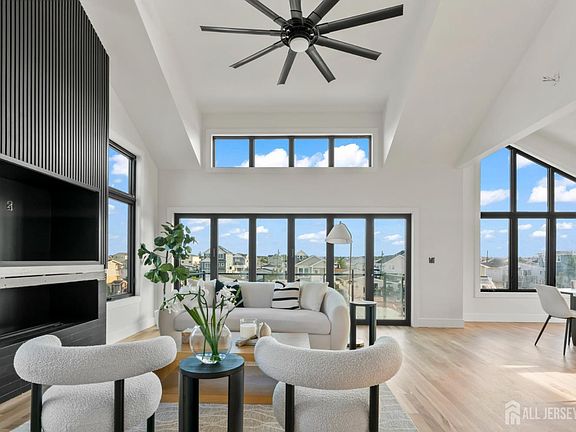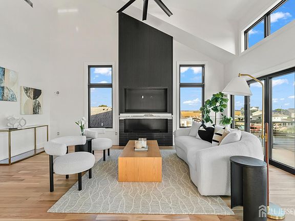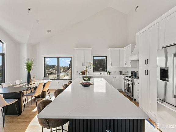 Experience modern coastal luxury in this brand-new, custom-built home on a naturally deep-water lagoon in Mystic Island! Designed with a reverse living floor plan to maximize water views, this 4-bed, 3-bath home features oak hardwood floors, a chef's kitchen with quartz countertops and Bosch appliances, and 14' bi-fold patio doors leading to a fiberglass deck with stainless steel cable railings. Smart-home ready with full Wi-Fi pre-wiring, multi-zone audio wiring, and clean, wire-free TV setups. Additional features include a 3-level dumbwaiter, tankless water heater, and PVC board & batten siding. The vinyl bulkhead accommodates large boats with easy access via Roundabout Creek to Great Bay no bridges to go under! Perfect for year-round living or a luxurious shore retreat. Whether you're seeking a year-round residence or a stunning shore retreat, this home delivers the perfect balance of elegance, comfort, and waterfront living.