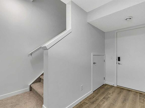 Welcome to this rare 2024-built corner-unit townhome in the family-friendly community of Redstone, offering 1,577.66 sq ft above grade. This home is part of a 4-plex block, a valuable feature in this development where many other buildings are 5-plex layouts—resulting in fewer shared walls and a more private, quieter living experience. Positioned toward the rear of the project, the home enjoys reduced traffic and a peaceful residential setting. The main level includes a spacious foyer, a versatile office/den, a utility room, and direct access to the double attached garage. The second floor features a bright, open layout with a generous living room, dedicated dining area, and a functional kitchen with pantry and great counter space, along with a convenient 2-piece bathroom. The upper level offers three well-sized bedrooms, including a primary suite with a walk-in closet and 3-piece ensuite, as well as two additional bedrooms, a full 4-piece main bathroom, and upper-floor laundry for everyday convenience. Large corner windows provide excellent natural light throughout the home. Located close to parks, pathways, transit, shopping, and with quick access to Stoney Trail, this property combines space, comfort, and exceptional value in a highly desirable Redstone location.