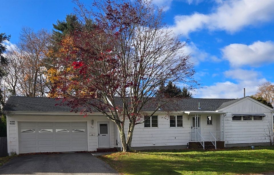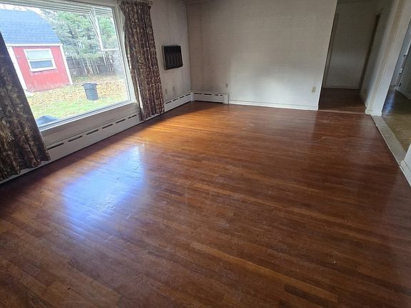 Bring your vision to this vintage 1958 ranch, loved by the same family since it was built and set on a spacious corner lot on a quiet side street. Much of its original character is ready to be restored, including newly revealed hardwood floors and custom solid-wood kitchen cabinets awaiting refinishing. The main bathroom has been refreshed with a new floor, toilet, vanity, and sink, with most of the work, including plumbing, already completed on a new walk-in shower. The inviting living room features a fireplace flanked by custom storage boxes for firewood and a large picture window overlooking the fully fenced backyard. A storage shed with electricity and running water from a private irrigation well adds convenience for gardening and outdoor projects. The basement offers a bonus room and a second full bath for expanded living potential. Major updates include the roof (2022), oil tank and oil burner (2012), and electrical system.