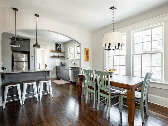 Welcome Home! This charming all-brick cottage boasts 3 spacious bedrooms on the main level, 2 updated baths, finished basement w/ 4th bedroom that can flex as office/den/playroom, back deck, & fenced-yard. Recently renovated by Stryant, the primary suite has it all & the basement includes office/laundry room, tons of storage, and loads of potential! Living room features vaulted cathedral ceilings and is overloaded with charm thanks to all the natural light, built-in shelves & bench, and the massive exposed brick fireplace. Large modern kitchen with stone counters, SS appliances, and breakfast bar is followed by the hallway to back deck or stairs to the basement. Wooded views out the back towards the headwaters of Hardee Creek, including a publicly owned communal greenspace that you have direct access to out the gate at the back of the yard. Centrally located in historic Kirkwood, short walk to Downtown Kirkwood, Bessie Branham Park, Pullman Yard, Kirkwood Urban Forest, Kirkwood Dog Park, Trolley Line Trail, and so much more! Brilliant!