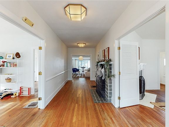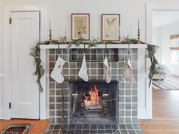 Incredible opportunity to live in the heart of Chagrin Falls! This charming three bedroom / two bath ranch offers open spaces, light filled rooms and fantastic updates. The entry opens into a wide hallway with wood burning fireplace, stone surround, and beautiful hardwood floors throughout. The open concept family room with updated fixtures leads into additional living or dining space with original built-ins and large floor-to-ceiling bay windows. Spacious kitchen includes butcher block island, stainless steel appliances, granite countertops, and eat-in breakfast nook. The owner’s suite features original wood burning fireplace and en-suite bath with updated lighting and cabinetry. The two additional bedrooms share the adjoined full bath and dressing room with closet space vanity. First floor laundry makes for easy access. The side patio, green space and deck offer the perfect outdoor space for entertaining. Two car garage. Just steps away from shops, restaurants and the Falls. The quin