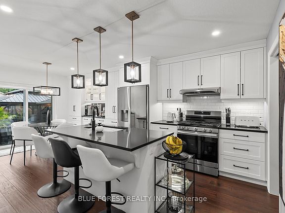 Welcome to your dream home in the highly sought-after community of Millers Pond! This beautifully updated bungalow offers the perfect blend of comfort, style, and functionality for modern family living. Boasting 3 spacious bedrooms on the main floor and 2 additional bedrooms in the fully finished basement, there's room for everyone. The basement also features a generous rec room, a 4-piece bathroom, and a dedicated media lounge with wet bar! perfect for entertaining or relaxing with family. The primary suite is a true retreat, complete with a large upgraded walk-in closet and a luxurious 4-piece ensuite. The heart of the home, the kitchen, is designed to impress with a quartz island with bar seating, a walk-in pantry, ceiling-height cabinetry, quartz countertops, a sleek gas stove, and an upgraded range hood. Step out from the dining area through the patio doors into your private backyard oasis. Enjoy the expansive stamped concrete patio, beautifully landscaped yard, and a handy shed for all your storage needs all enclosed within a fully fenced yard ideal for kids and pets. Additional highlights include a double-car garage with a concrete driveway, convenient main-floor laundry, and abundant exterior lighting. From top to bottom, this home showcases pride of ownership and thoughtful upgrades throughout. Don't miss your chance to own this exceptional home and become a part of the welcoming Millers Pond community. Schedule your private showing today!
