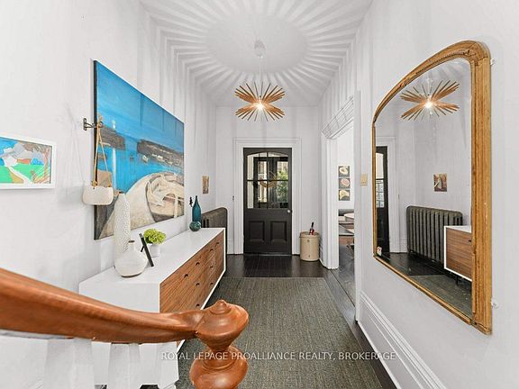 Rare opportunity to take over a piece of history with this classic and delightful five-bedroom family home, in the heart of the coveted Sydenham Ward in downtown Kingston. This charming residence was meticulously designed by renowned architect Jonathan Power in 1878, and benefits from a remarkably large garden, difficult ever to find in this central location, just steps from Market Square, KGH and Queens .Enjoy the comforts of modern living with a recent full renovation (designed by the interior designer owner) which included a new kitchen, luxurious bathrooms, and an elegantly finished basement equipped with 8 high ceilings and ample natural light. The expansive rear garden is a true gem, featuring a stylish deck and a European-style gazebo(just built), providing an idyllic space for relaxation and entertainment. Plus a gas fire piton the terrace to enjoy on cooler evenings. This home harmoniously blends classic architecture(both inside and out) with contemporary amenities. Enjoy the original restored radiators for character, alongside modern air conditioning on the top three storeys and efficient radiant heat from a new gas-fired boiler. From the fully restored front porch and balcony crafted with cedar and ipe wood to the inline parking accommodating up to three vehicles with a carport, every detail has been considered. With five generously sized bedrooms and three baths, there is plenty of room for the entire family to live and thrive. This is a unique opportunity to own a stunning home that offers both historic charm and modern convenience in the heart of Sydenham Ward.