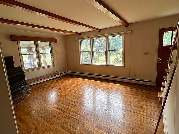 Cape Cod on 1.3 acres. 1512 square feet. 4 bedroom, 1.5 bathrooms. Built in 1953 all brick. Outside: deck attached to screened in porch, 4 car garage, utility garage and shed. Basement entrance. Inside: in house vacuum, all hardwood floors, screened in sunroom. Oil heat, oil hot water, new air conditioning 2021, new roof 2020, septic inspected & emptied 2020. Taxes $4345.00