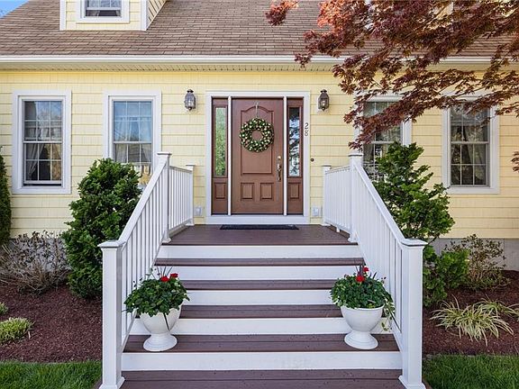 A rare offering in desirable Country Brook Estates! Welcome to this elegant and timeless New England Cape Cod style home in the heart of Western Cranston which has been lovingly maintained. 28 Whispering Pines is sited on a large, professionally manicured corner lot, and offers the quintessential suburban lifestyle perfect for any family. The chef in the home will enjoy the sophisticated, well-appointed kitchen complete with rich cherry cabinetry, stainless appliances, and a breakfast bar, all flowing seamlessly into the spacious family room with gas fireplace and adjacent outdoor deck with a powered awning ideal for morning coffee and indoor/outdoor entertaining. A formal living room and elegant dining room with stunning hardwood floors and a lavette/laundry complete the first floor. The second level offers a main bedroom with his and her closets, two additional bedrooms and a full bath. The partially finished lower level provides ample space for an office, playroom or crafting area, and transitions onto another outdoor space to enjoy the panorama of the lovely park-like grounds, perfect for game nights or simply relaxing with a glass of wine. Laundry and ample storage are also featured. Refined vinyl siding, new windows, central air, and underground irrigation provide comfort and easy maintenance! Minutes to Midville, West Warwick and Cranston Country Clubs, Garden City Center Shopping and Dining, and some of the best schools in RI. This home won’t last—don’t wait!