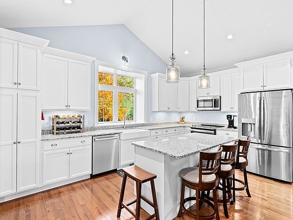 - Features: Vaulted Ceiling(s), Window(s) - Bay/Bow/Box, Countertops - Stone/Granite/Solid, Kitchen Island, Open Floorplan, Recessed Lighting, Stainless Steel Appliances, Lighting - Pendant
