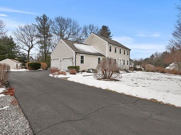 Fall in love with this classic Colonial, situated in the heart of Sutton. This charming residence features 3 beds & 2.5 baths, combining classic and comfortable living. Upon entering, you are welcomed by a sunlit living room w/ vaulted ceilings & a cozy brick fireplace. The spacious kitchen is equipped w/ breakfast bar and plenty of cabinet space, while a formal dining room provides an ideal setting for entertaining guests. A home office & convenient half bath complete the 1st level. Upstairs, discover 3 generously sized bedrooms, including a primary suite boasting 2 walk-in closets & private bath. An additional full bath is conveniently located off the hall. The finished basement offers extra living space, featuring 2 spacious bonus room with tongue-and-groove pinewood walls. Step outside to find a backyard oasis w/ the deck overlooking a firepit & shed, making it perfect for outdoor gatherings. This property is completed by 2-car garage w/ lofted storage. Schedule your showing today!