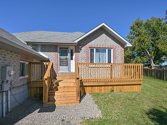 Brick Bungalow on quiet crescent. Nice neighborhood for family or downsizing. 3 bedrooms, 2 baths, one is 4pc large bathroom on the main level and a convenient 2 pc in the lower level, off the large Rec Room. Main Floor Laundry, Large open concept Living Room / Dining Room. big picture window over looks the new entry deck, room to sit and watch the neighborhood. Kitchen has wood cabinets, double sink with window overlooking the back yard. Entry has tile flooring. Some flooring will need to be updated. Nicely laid out with Three good sized bedrooms, Main Floor Laundry by the kitchen in closet cabinet. Lower level has expansive Rec Room with broadloom. Cozy gas fire place. 2 pc Bathroom. Under stairs storage, Utility room with 200 amp hydro service. Walk out from the Dining Room to a large deck with stairs down to the large pie shaped back yard, mature tree lined yard for privacy. Wooden Garden Shed. Plenty of space for garden or playground. Entrance to the garage, easy access to basement. (In-law suite potential) large parking lot for 3 plus cars outside and 2 inside. Garage door opener, Dryer is New.