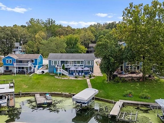 Tucked along the shimmering first tier shoreline of Lake Lotawana, this immaculate home captures the essence of lake life while blending it with the comfort of refined design. Perfectly positioned in a calm cove yet still boasting vast lake views, it offers the best of both worlds! Step inside to discover an open, light-filled interior where walls of windows frame sweeping water views and natural light dances across every room, creating a warm and inviting atmosphere. At the heart of the home, the stunning kitchen takes center stage with a large center island, gorgeous quartz countertops, grand walk-in pantry, and breakfast bar seating. Thoughtfully designed for both everyday living and entertaining, it seamlessly flows into the spacious dining and living areas, where gatherings naturally spill out to the covered deck. A rare and versatile layout features not one, but two main-level primary suites, each a private retreat with serene views and spa-inspired baths. This unique design makes hosting overnight guests effortless while also providing flexible living arrangements for a variety of lifestyles. The walk-out lower level continues to impress with a 3rd bedroom, additional living area, and a bonus office/non-conforming bedroom, an ideal setup for game days, weekend get-togethers, or quiet evenings by the water. Step outside to the expansive patio where endless views stretch across the lake, leading down to your private dock and a lakeside yard ready for summer days of boating, swimming, or simply soaking up the sun. Every detail of this property is designed to embrace and celebrate lake living, whether you’re sipping morning coffee, lounging on the deck in the afternoon, or hosting unforgettable sunset gatherings by the lake and patio. Ample parking ensures friends and family can always join in on the fun, making this home as welcoming as it is beautiful. Don’t miss your chance to experience the best of Lake Lotawana and call this one-of-a-kind retreat your own!