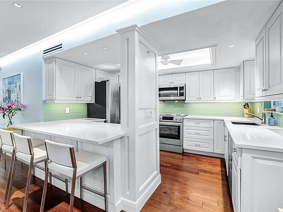 Located within walking distance to Naples' pristine white sand beach and the renowned 5th Ave. South, this fully renovated haven lies in the heart of Old Naples, where luxury seamlessly meets tranquility. This exquisite two-bedroom plus den residence offers a serene retreat with a captivating Western exposure, providing breathtaking sunset views from the expansive enclosed glass lanai. Designed for modern living, the open-concept layout effortlessly blends indoor and outdoor spaces, creating an ideal environment for both relaxation and entertaining. The freshly remodeled interior features elegant hardwood flooring, while the sleek, contemporary kitchen boasts pristine white quartz countertops and premium stainless steel appliances. Every detail exudes sophistication, including the spa-like bathrooms with frameless glass shower enclosures that enhance the home's sense of refinement. Adding to its allure, the condominium complex is very well updated and maintained, with the Milestone Report completed with excellence. Reserves are strong, and HOA costs are low, ensuring peace of mind. The landscaping has been beautifully enhanced this year, contributing to the community's inviting ambiance. Perfectly situated within walking distance to fine dining, world-class shopping, vibrant entertainment, and the pristine white sand beaches of Naples, experience the pinnacle of coastal living in this exceptional home, where comfort, style, and an unbeatable location converge to create your ultimate sanctuary.