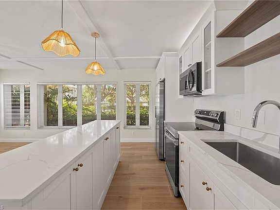 Welcome to your dream coastal escape. This 1st floor, beautifully renovated condo combines modern luxury with timeless beachside charm, offering the ultimate in coastal living just 3 blocks from the sparkling Gulf waters. Every detail of this corner unit has been thoughtfully updated with high end finishes, including sleek quartz countertops, custom cabinetry, designer wallpaper & lighting and premium flooring throughout. The open concept living area provides an excellent space for hosting and entertaining with tons of natural light. With spacious bedrooms, spa-inspired bathrooms this condo is the ideal retreat for year-round living or seasonal getaways. Beach Breeze, a newer community, provides an exceptional rental policy allowing weekly rentals with low condo fees and a pet friendly environment. Located in one of Naples' most desirable beachside neighborhoods, you'll enjoy convenient access to white-sand beaches, boutique shopping, fine dining, and world class golf. Don't miss your chance to live the Naples beach lifestyle and comfort just 2 blocks from world renowned 5th Ave while enjoying the serene Gulf breezes and golden sunsets. This property has not sustained any flood or hurricane damage. It sits in a no flood zone per FEMA regulations and does not require flood insurance.