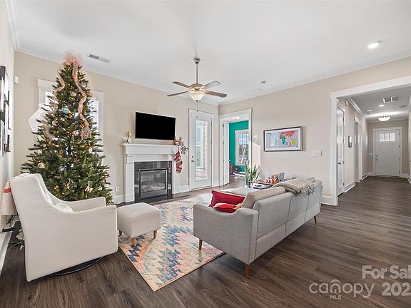 Welcome to the ultimate active lifestyle in Riverwalk! This stunning ranch home is situated on a corner lot with a huge front porch that begs for morning coffee and neighborly chats. Step inside to discover an open floor plan highlighted by tall ceilings and a cozy fireplace in the living room, creating an inviting space for entertaining. The gourmet kitchen is a chef’s dream, featuring a massive island with a breakfast bar, gas range, and a spacious pantry. Designed for effortless living, this split-bedroom plan ensures privacy, with a primary suite that includes a brilliant secondary access point connecting the primary closet directly to the laundry room. A formal dining room offers elegance for special occasions, while the drop zone off the alley-accessed, 2-car attached garage keeps daily life organized. Modern touches like a tankless water heater add efficiency. Outside, relax on your patio or explore the incredible community amenities just moments away. Whether you are enjoying local riverfront dining and boutique shops, hitting the BMX track or Velodrome, or exploring the miles of trails along the scenic Catawba River, this home puts the best of Rock Hill right at your doorstep. With easy access to the interstate and community pool, playground, and eateries, this is more than a home—it’s a lifestyle.