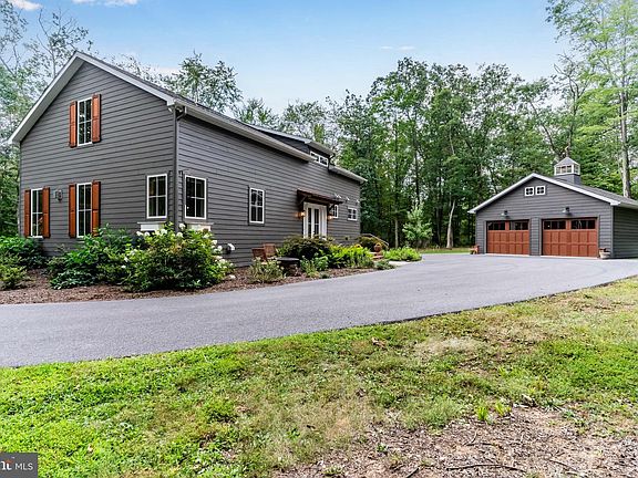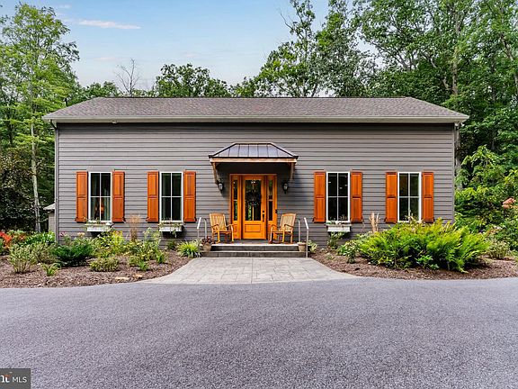 VERY unique "diamond in the rough" -designed by a discerning woman who knew what she wanted in her customized dream home, daily overseeing the construction with attention to every detail. Meticulously maintained since completed in 2019. Located at the top edge of camp/conference, it is 14 miles from Gettysburg and 6 miles to I-81 Scotland exit 20. It offers a safe and serene peacefulness that is hard to find, yet not too far away. Study the photos for this open floor plan mini "resort" for just yourself or a gang of young-at -heart, close friends or family to join you on the week-ends! The placement of the house on 1.6 acres allows for natural light to flood the inside while viewing trees from every oversized, casement windows(w/ Levelor blinds) .10' ceilings painted pale blue (many recessed lights) resembles the sky somewhat, creating a beautiful "I just want to stay here forever" feeling! All custom cabinetry in kitchen, three bathrooms and upper berths made by local cabinet maker Daniel Benedict. Reclaimed wood barn door slides over the pantry/broom closet. Two large windowed entry doors flank the front and the back of the house, allowing more light with the honey colored hickory flooring through out main floor. The main primary bedroom ensuite has a pickled pine wood ceiling, two barn doored closets on either side leads into large, tiled shower (NO glass doors to clean!), stack washer/dryer . Follow me up the gorgeous walnut stairs to be very surprised- an AMAZING BIG "Bunk Room" extraordinaire! 6 beds each having a closet , drawers, light & niche to charge your cell. Two skylights with recessed lights on vaulted pale blue wood ceiling add to the ambiance of this cozy carpeted luxurious hide out! One of the full baths has a stack washer/dryer for guests. The back deck is adorned by beautiful copper overhang. Gas firepit is not too far, nor is the hammock. 6" crawl space accessed by Bilco doors houses the electric box, tankless water heater , reverse osmosis water treatment system and much more storage. Circular driveway can accommodate many guests. Don't miss the copper peacock perched atop the glass cupola on the oversized two car garage. Well insulated, finished dry walls could house a ping pong table or lots of outdoor equipment. Pull down stairs to storage items on fully floored "attic". Every detail-including copper caps on cedar shutters- has been included; Enjoy AT trails, Caledonia State Park, 2 Penn National golf courses, Long Pine Dam reservoir, Totem Pole Playhouse, Gettysburg, Michaux XC skiing trails in close proximity- no city traffic to fight. Seller sadly relocating only due to family circumstances , making it difficult to leave her forever home in a sweet sequestered spot.