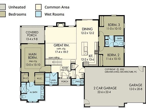 Fireplaced great roomRecessed lightingOpen floor planWooded backdropsGranite kitchen