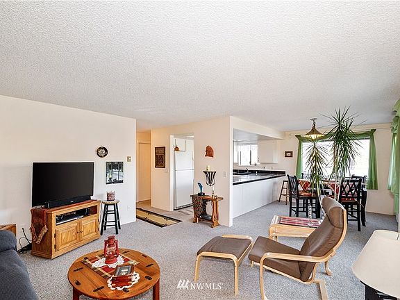 Waterfront living at a fraction of the cost! Mid level (corner unit) 2 BR, 1.5 BA with wrap around views of Pt. Washington Narrows and city lights. Northeasterly exposure with sun drenched morning sun and private balcony. Cozy living room fireplace with mantle and a fully equipped kitchen with all appliances included plus washer/dryer. Huge utility room with built-in storage. There are only 8 stairs from the covered parking space. Close to Olympic College, Evergreen Park, Seattle Ferry. Move-in ready!