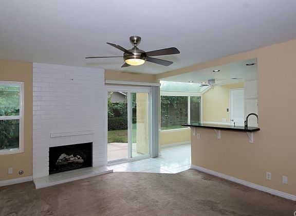 Gorgeous home with a remodeled kitchen, granite counters, refaced cabinets, recessed lighting, newer dishwasher, updated lighting with dimmers,