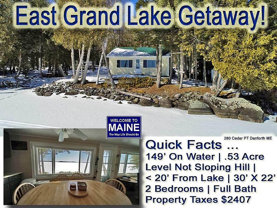 Looking For Lake Place On The North End Of East Grand Lake? You Are In Luck! 150' On East Grand Lake And You Are In The Front Row! Welcome To East Grand Lake, Maine's 8th Largest. Two Bedrooms, Open Design, Vinyl Sided, Metal Roofed. Did We Mention You Are Smack Dab On The Shores Of East Grand? No Better Location! The Lot Is Level, Landscaped, No Steep Hills To Worry About Negotiating. Two Big Picture Windows, All The Lake Up Close Spills Into Your Lakefront Living Area. East Grand Is 16,000 Acres Large, Beautiful And Fun! The Owner Telecommuted To Work Online Remotely Last Summer. You Can Too! Rent Out When Not Using Yourself For Profit. Ceiling Fans, Insulted Vinyl Tilt In Windows. Full Bath, New Septic System, Natural Wood Floors That Are Easy Care. Video. Looking For A Place Up In Maine To Get Below Radar, To Unplug And Recharge? No Job Jar And Neat As A Pin. 660' Square Feet Is All You Need! Questions? Reach Out, Let's Connect.