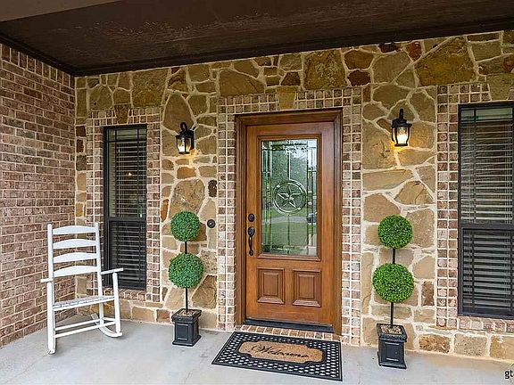 Situated in the friendly neighborhood of Cedar Grove, this delightful 4 bedroom home offers over 2100 sq ft of generous living space. The gorgeous kitchen is open to the living room and includes granite countertops, stone backsplash, and a large breakfast bar. The living room features brand new hardwood flooring, a beautiful stone fireplace and large windows over-looking the backyard. Fantastic curb appeal, inviting front porch, well maintained, and Hallsville ISD. Incredible property in this price range!