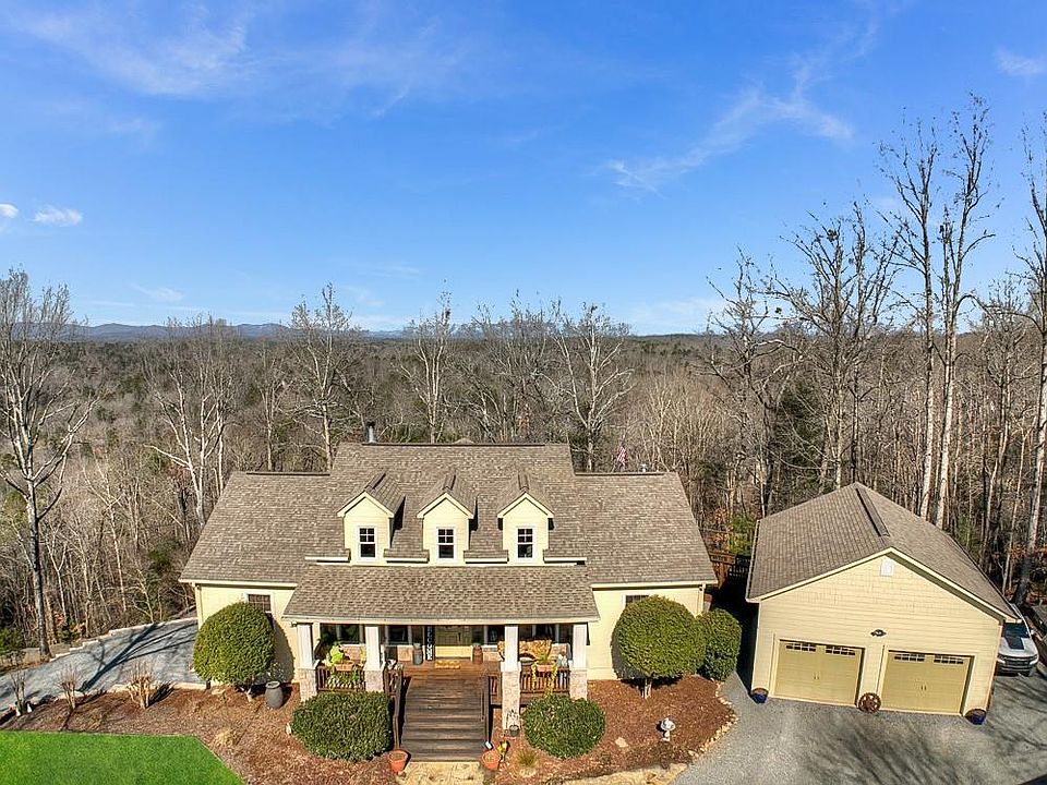 Gorgeous mountain home perfectly situated on 4 lots with magnificent long range MOUNTAIN VIEWS! This 4BR/3BA home features 2 levels of living, including an In-Law Suite with 2 kitchens, 2 laundrys and 3 car garage. Full time living or vacation rental, this home is loaded with character & exquisite craftsmanship! Great room features a BIG VIEW, soaring ceiling, wood stove w/rock surround & french doors to huge covered porch w/hot tub. Well appointed kitchen has quartz counters & high-end appliances. Luxurious MASTER features whitewashed ceiling, spa-like bath & walk-in closet. Very nicely finished terrace level with luxury vinyl plank flooring offering a living area, huge kitchen, laundry, bedroom, bunkroom/office & full bath w/tin ceiling. Outdoor living abounds: porches, stone patio, firepit, cornhole area & garden. RV hookup, end of road privacy! 2 car detached garage. Located in a popular river resort w/amenities galore. Vacation rentals allowed. Furnishings negotiable.