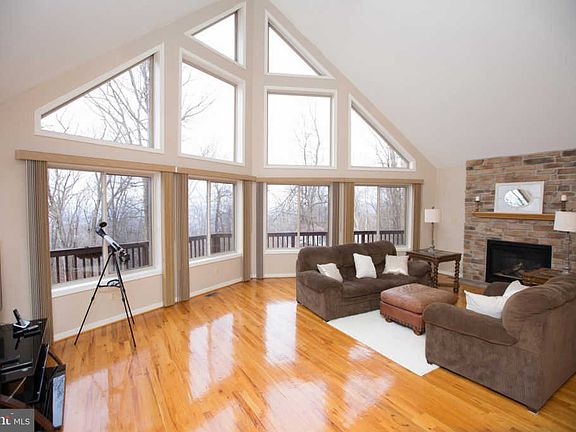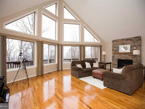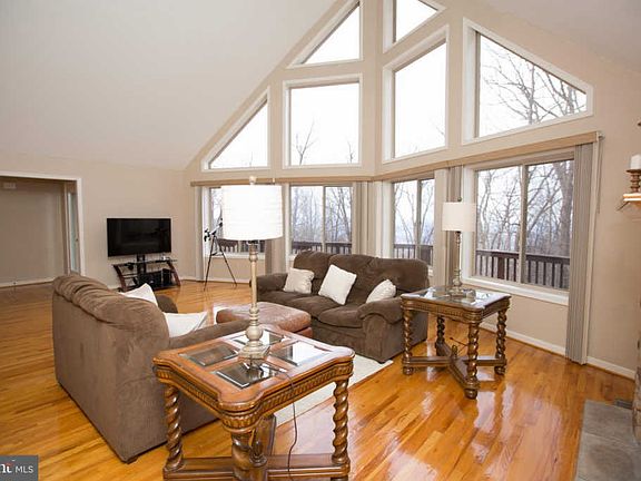 Just listed and back on the market you must see this Beautiful Home great PRIVACY !Winter views! master bedroom ,hardwood floors ,gas fireplace ,vaulted ceilings(including bedrooms),floor to ceiling windows,spacious kitchen with a large island ,dining room (w/bay window w/bench),guest room, screened porch, 2 car garage, paved driveway, wrap around deck,covered front porch. newer heat pump,coils,blowers.This wonderful house for the weekend. breathtaking views, community pool.brand new flooring in the first floor and freshly painted.updated pictures coming soon.
