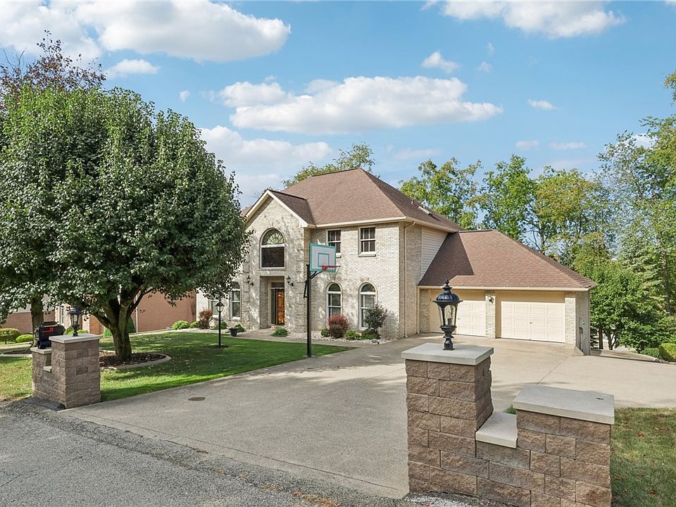 Stunning Schuster-built home w/ exceptional features inside & out. A grand two-story entry w/palladium window & ceramic tile welcomes you. French doors open to a first-floor office & a spacious great room w/ high-end hardwood flooring. The open-concept layout flows into an eat-in kitchen,maple cabinetry, soft-close features, granite countertops, dual-fuel cooktop/convection oven, microwave, dishwasher, refrigerator, garbage disposal, & two pantries (one with pull-out shelves). 1st floor laundry.Formal dining room. The primary suite offers a tray ceiling, hardwood floors, large closet & a spa-like bath with jetted tub, walk-in shower, double vanity & ceramic tile. Three additional bedrooms feature hardwoods, ceiling fans, ample closets & share a full bath. Lower level boasts a game room w/wet bar, private exercise room, full bath, extra laundry, storage room w/commercial shelving and a 589 sq. ft. garage/workshop. Upper Level garage is 589' also.Two back decks.Professionally landscaped