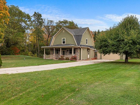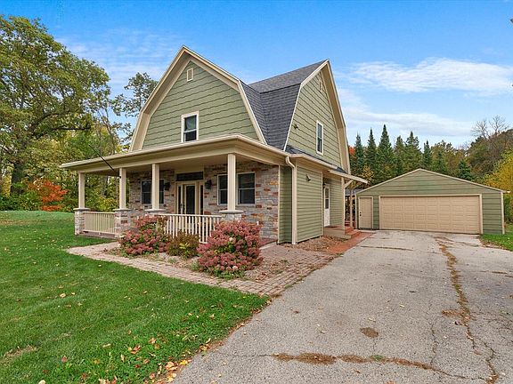 Charming farmhouse-style home on a picturesque 0.73-acre lot in the sought-after West De Pere School District. This 2-bed, 2-bath home blends timeless character with modern updates, offering peaceful country living minutes from De Pere and Green Bay. Features include hardwood floors, abundant light, and an updated kitchen with a cozy office nook. Upstairs, the renovated primary suite boasts a spa-like bath with double vanity, marble tile, and soaking tub. Enjoy the serene backyard with a spacious patio, string lights, fenced garden, and chicken coop--perfect for relaxing or entertaining. Plenty of room to expand while preserving its classic charm.