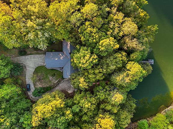 This home is privately tucked away in a wooded 4.87 acres that has beautiful rock formations and a waterfall. It sits back in this gorgeous slough that has year round water where the family can paddle board and swim without worry of boats coming by. The home has large gathering rooms and a cottage closer to the water for easy lake living. This home was made for family lake memories.