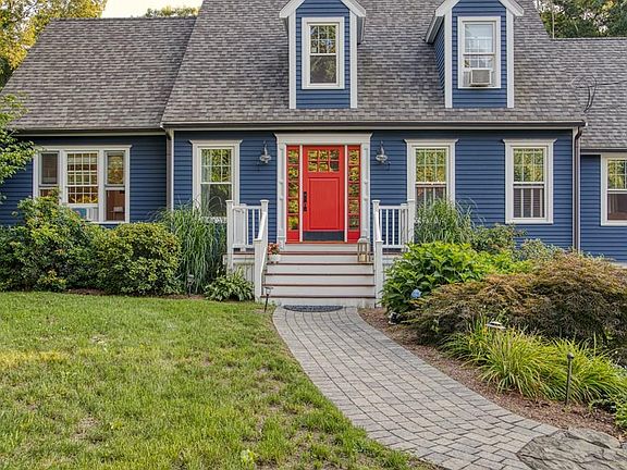 Picture perfect Cape nestled on a beautifully manicured lot in the quaint town of Rowley. This classic home offers a versatile floor plan that easily allows for multigenerational living, home office, or private guest space on the main level. Designed for fabulous indoor/outdoor entertaining, the sunny 21x20 living room with vaulted ceiling, and fireplace leads to an incredible backyard retreat. The newer Trex deck gazes over the private stone patio complete with firepit. The fully applianced kitchen is accented with a brick pizza oven, stainless appliances, plenty of counter space and offers great sightlines into the living room, dining room, and the sitting room/playroom. Upstairs is a generous master suite with dual closets, 2 other bedrooms, and the other full bath. Numerous updates include a new septic system in 2014, roof in 2018, freshly painted exterior, new crushed stone play area, copper gutters and so much more!