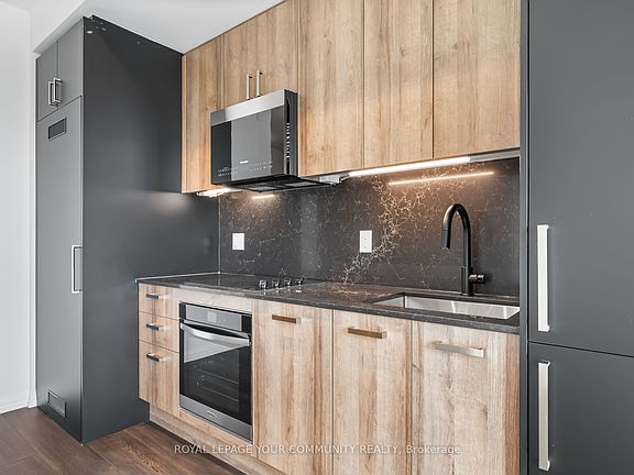 Integrated stainless steel appliancesUpgraded finishesSpacious primary bedroomSouth-facing cn tower viewsWalk-in showerOpen-concept denOverhead light