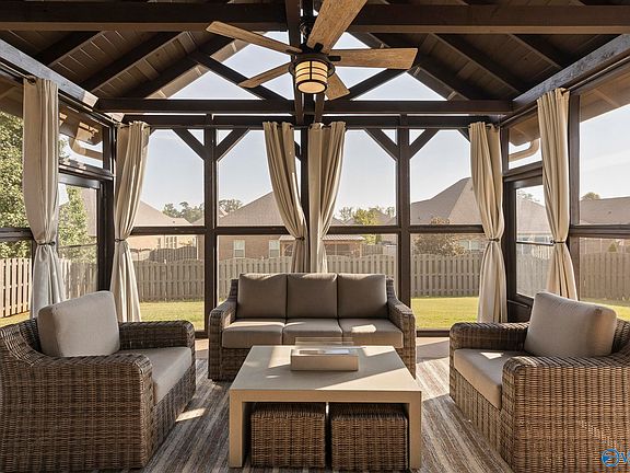 Beautiful move-in ready 4 bed/3 bath home in Madison! This open concept one-level home has a great floor plan featuring hardwood floors, isolated primary suite, large kitchen island w/granite countertops and bar seating, dining room w/wainscoting, and living room w/gas fireplace. You’ll love the sunroom and private screened-in covered patio with vaulted beams overlooking the privacy fenced back yard. Keep everything organized in your pantry with custom cabinets & a handy drop zone off the three-car garage. Vivint security system remains. Community clubhouse, pool, and playground! Convenient to the best shopping and dining and Madison Hospital. Only 20 min to Gate 9 and HSV Airport!