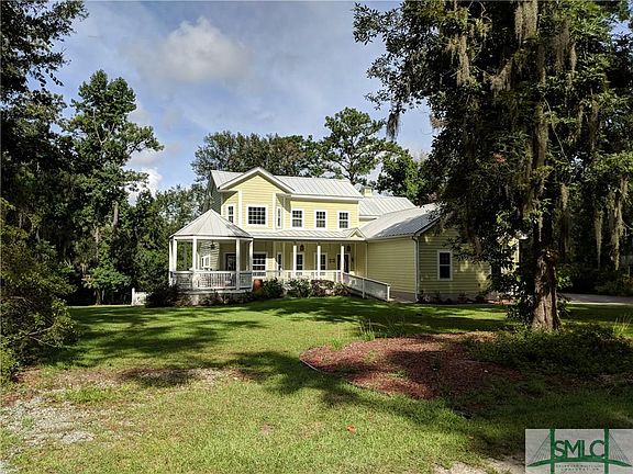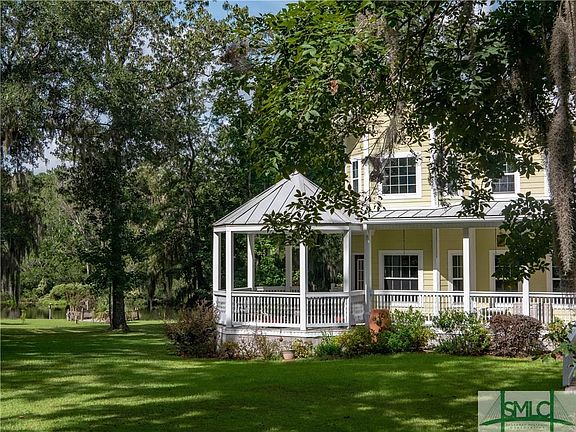 Waterview and marshfront oasis on 0.84 acres in Sunbury deepwater community! Superior construction with metal framing, raised finished concrete foundation, standing seam metal roof, & James Hardie fiber cement siding. Gorgeous farmhouse style with wrap-around porch with gazebo, three car garage, and heart pine floors. Layout features formal and informal living areas, bay windows in the dining room and breakfast nook, sunny kitchen with views of the lake, downdraft range, breakfast bar, and a gas fireplace flanked by windows looking out onto the private deck. First floor master suite has his and her walk-in closets, sumptuous master bath, and built in dressers and window seat. A powder room, laundry room, and home office complete the first level. Upstairs you'll find a loft overlooking the vaulted great room, two bedrooms, a full bath, and a huge bonus room/bdrm 4 with closet and walk-in attic storage. Community dock/boat launch & walk to Sunbury Crab Co for dining and entertainment.