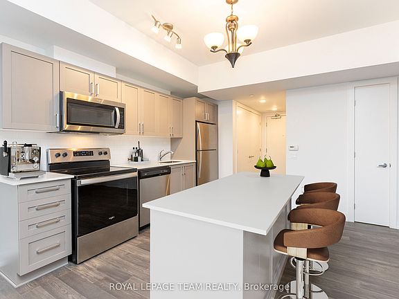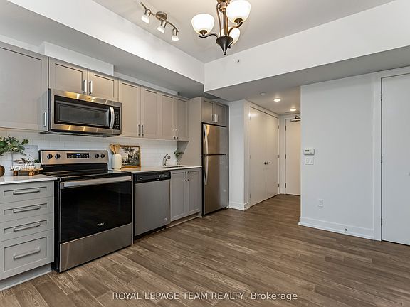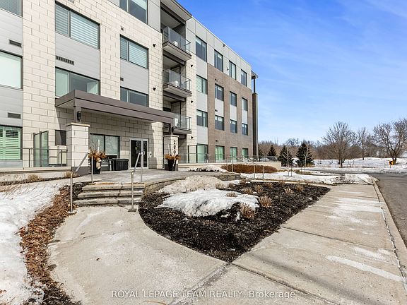 Boutique Living with Breathtaking Views! Welcome to Serenity in Kanata North, where luxury & lifestyle meet convenience & affordability. This 1-bedroom + den ground-floor condo offers a rare opportunity to live in an oasis of natural beauty while being steps from the heart of Canadas tech hub. Ideal for investors, single professionals or those seeking a low maintenance sophisticated space. Ditch the commute & embrace a lifestyle where everything is within reachwalk to work at the worlds leading tech companies or enjoy a round at The Marshes Golf Club. With easy access to public transit, Tanger Outlets & Kanata Centrum's dining & entertainment, youre perfectly positioned to live, work & playall without needing a vehicle! Inside, discover 5" luxury hardwood floors, quartz countertops, 9' smooth ceilings & in-suite laundry! Step outside to your spacious private patio, perfect for alfresco dining & lounging. Indulge in luxury amenities: sprawling rooftop patio w/ breathtaking golf course & lake views w/ the Gatineau Hills beyond, a fitness room & indoor bike storage. Explore bicycle pathways & winding hiking trails through NCC-protected forests, offering a perfect escape into nature right at your doorstep. Bonus: Comes w/ a storage locker, & water/sewer included in condo fee. Your serene escape awaits!