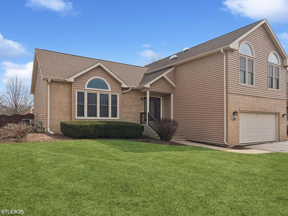 Step into this inviting home and discover a stunning open floor plan that seamlessly blends space and style. Boasting a gorgeous backyard, this residence is tailor-made for both entertaining and everyday family living. With its light-filled interior featuring a neutral palette this home exudes a sense of warmth and sophistication. The connected living and dining rooms with their soaring volume ceilings create an impressive ambiance, while the updated kitchen is a chef's dream, showcasing high-end cabinets, granite counters, and stainless steel appliances. Adjacent is the cozy eating area overlooking the expansive step-down family room, providing the perfect setting for relaxed gatherings. Upstairs, you'll find four bedrooms, including a serene master suite complete with a walk-in closet and a spacious bath featuring a jetted tub, separate shower, and newer double vanity. For additional living space, the finished lower level offers a spacious rec room, a wet bar with granite countertops, and ample storage. Located in a wonderful neighborhood close to parks, this residence offers the ideal blend of comfort, functionality, and beauty. Don't miss your chance to make this exquisite property your own! UPDATES: AC, Furnace and humidifier 2020, New Roof, sun tunnels 2018, Driveway expansion 2015, Deck 2016, water heater 2018, Oven 2022, Dishwasher 2019, New Kitchen in 2014!!!