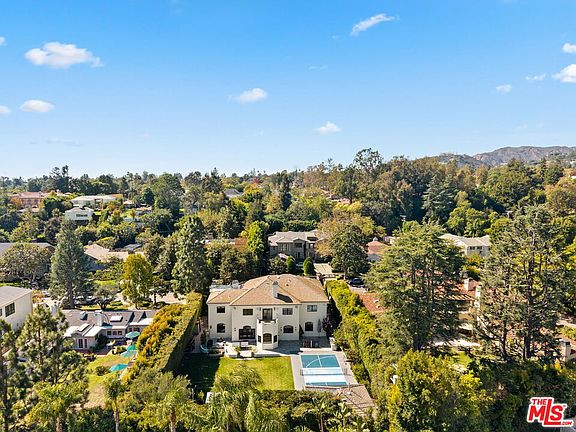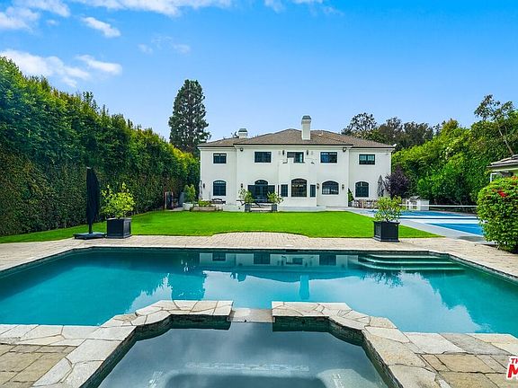 Located on one of Brentwood's most desirable streets, Homewood Road, this newly reimagined estate combines refined design with relaxed California living. Extensively renovated by the current owner, the residence offers approximately 6,800 sq. ft. of living space on an expansive 18,359 sq. ft. flat lot. A grand double-door entry opens to a light-filled foyer with soaring 23-ft ceilings, setting the tone for the home's bright and open layout. The main level features a formal dining room with garden views, a dedicated theater, and a stunning great room where a double-island chef's kitchen flows seamlessly to the family room and outdoors. The kitchen is outfitted with custom wood cabinetry, marble countertops, professional-grade appliances, and a walk-in pantry. A breakfast nook surrounded by windows overlooks the pool and gardens. Two spacious bedrooms and a full laundry room complete the main floor. Upstairs are four en-suite bedrooms, each with walk-in closets, including a luxurious primary suite with private sitting area, office, and dual walk-in closetsone currently used as a fitness studio. The resort-style backyard offers a sparkling pool and spa, multiple lounging areas, lush landscaping, and a generous lawn. Additional highlights include a private pickleball court and a fully permitted two-bedroom, one-bath guest house with its own laundry. Situated within the Kenter Canyon Elementary district and surrounded by Brentwood's finest estates, this exceptional property embodies timeless elegance, modern comfort, and an desirable place to call home.