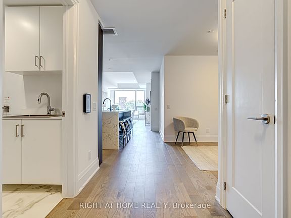 Welcome to Tridel's Bianca residences Suite 410 as part of premium Annex Collection, this bright spacious over 1300 sq ft south facing suite boosts unobstructed view of CN tower, Designer kitchen cabinetry with contemporary full height flat panel doors complete with integrated Miele appliances. Quartz kitchen countertop and matching backsplash with polished double square edge and deep undermount sink, Distinctive multitask island with waterfall edge countertop. Miele 36" integrated refrigerator with matching panel door, Miele30" built-in stainless steel convection wall oven, Miele 36" built-in gas cooktop, Miele 24" integrated dishwasher, Miele built-in, stainless steel microwave, Wiring done for motorized window blinds. Includes one parking at P1 Level and one locker.