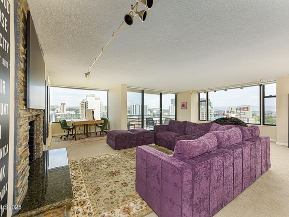 Penthouse Living on the Truckee River at Park Towers Experience one of Reno's most sought-after addresses with this spacious 2-bedroom, 2-bath penthouse residence perched directly above the Downtown Riverwalk. This rare offering combines unmatched convenience with some of the most breathtaking views in the city - panoramic vistas of the Truckee River, the skyline, and the surrounding mountains, visible from nearly every room. The open layout is filled with natural light thanks to floor-to-ceiling windows and sliding doors that frame the views and create an easy flow between living, dining, and entertaining areas. Two oversized balconies are connected directly to the living and dining spaces - perfect for enjoying morning coffee, hosting friends, or simply relaxing while watching the river below and the city lights at night. Both bedrooms are generously sized, each featuring its own walk-in closet. The unit has been well cared for and updated, offering a comfortable balance of modern touches and timeless design. Despite being in the heart of the city, the home is exceptionally quiet, creating a private retreat above it all. The location is unbeatable - just steps from restaurants, coffee shops, and entertainment venues, with Midtown Reno only minutes away. Daily needs are also at your fingertips with groceries and shopping nearby. Whether you prefer walking, biking, or scootering, this residence makes it effortless to enjoy the best of Downtown and Midtown living. If you've been waiting for a riverfront penthouse that combines space, convenience, and unforgettable views, this is one of Reno's finest opportunities.