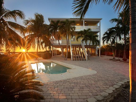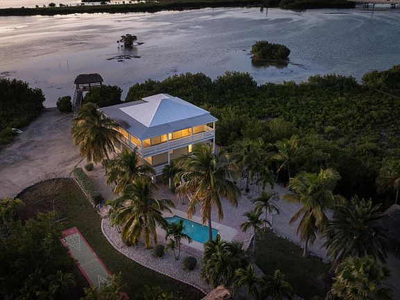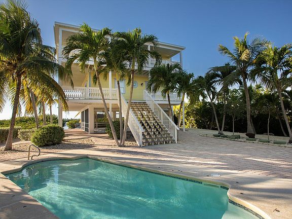 This exceptional waterfront property is one of the few zoned for nightly rentals in the Lower Keys. Located on the ocean side of Little Torch Key, this idyllic haven on 4+ acres will offer its new owners and their guests unparalleled seclusion. The large stilted home features a screened room at ground level, close to the pool and ideal for entertaining. The first interior floor features a waterfront primary suite with shower and double sinks, two large guest bedrooms, another full bathroom and laundry. Each bedroom opens out to the large covered porch with panoramic vistas. The top floor features the main living space -- great room, dining area, eat-in kitchen and half bath - and another porch perfectly situated to take advantage of unobstructed sea breezes and amazing sunset views. With this expansive property as your home base, indulge in a myriad of activities - lounging by the pool, kayaking, shuffleboard, stargazing, fishing, snorkeling and even lobstering - all within the confines of your private oasis!To maximize your adventures, there's a covered swimming dock, private sandy beach with channel access, detached recreation room with storage, poolside chickee hut and your own private shuffleboard court. Remarkably private, this residence is akin to having your own drive-to private island in the heart of Lower Keys! Revel in panoramic views from the sprawling walk-around balconies, offering an unmatched vista. While the video and photos provide a glimpse into this magnificent property, nothing compares to experiencing 3 Kings Cove firsthand. Book your exclusive tour today and immerse yourself in all the splendor that awaits!