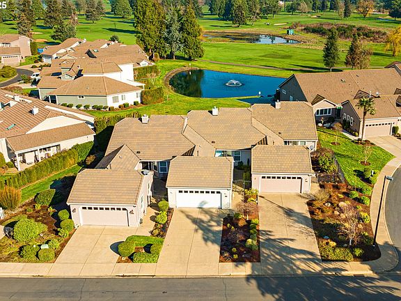 Relaxed living with water and fairway views! Nestled in the heart of the Emerald Valley Golf Club community, this beautifully updated, single-level condo offers a seamless blend of comfort and style. From the moment you step inside, you'll appreciate the inviting layout, filled with natural light and highlighted by an added sunroom (2012) featuring a wall of windows that frame peaceful pond views. The kitchen has been tastefully remodeled with sleek granite countertops and newer stainless-steel Bosch appliances—including an electric range, instant hot water and dishwasher creating a modern, functional space. The spacious primary suite is a true retreat, offering direct patio access, sweeping golf course views, and a beautifully remodeled en-suite bath. The guest suite includes a newly added door for direct access to the hall bathroom, enhancing privacy and functionality. Step outside to a gorgeous back deck that overlooks both the pond and the fairway—an ideal spot for relaxing, entertaining, or simply enjoying the view. Out front, a fully fenced courtyard provides another private space, perfect for pets or quiet mornings. With low-maintenance living in a picturesque setting, this townhome-style condo is perfect for those seeking comfort, convenience, and natural beauty. 50 year tile roof installed in 2015. New HVAC system in 2017. Gas water heater in 2018. The home is also generator-ready, offering gas and electric generator hook-up.