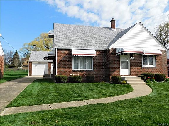 Spacious brick & vinyl sided cape. 1434 sqft! Light and bright with neutral tones thru out. Kitchen stove and refrigerator stay. Hardwood floors. Four bedrooms - 2 on first floor and two on second floor. Beautiful yard with covered patio! Solid mechanics: architectural roof (house 2017, garage 2014). Hi efficiency furnace & central air (12/2018). Circuit breakers, copper plumbing and updated windows. Basement is a poured foundation and has glass block windows. Washer & dryer stay. Showings start immediately. Offers, if any will be reviewed Wed April 28th at 5pm