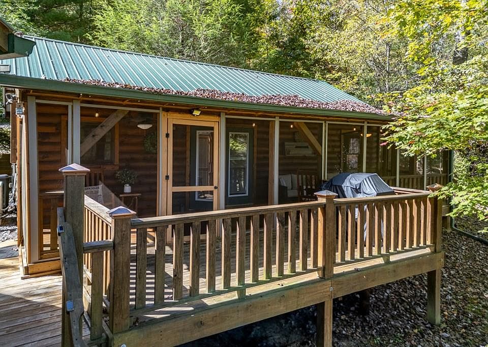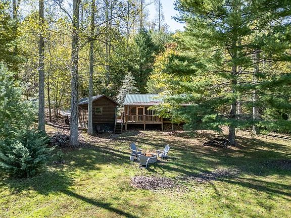 Tucked in The Meadows at Fox Ridge, this furnished log-style cabin blends rustic charm with modern comfort. Set on a level, usable lot with peaceful frontage on Bearpen Creek, it's easy to picture quiet mornings on the screened front porch that spans the length of the home—your new favorite spot for coffee and conversation. Inside, hardwood floors and natural wood finishes create a warm, welcoming atmosphere, while a single-car garage provides convenient parking and extra storage. The green metal roof adds a cozy touch, especially when rain sets the perfect cabin mood. Outside, a firepit invites evenings by the creek under the stars. With power, a shared well, and HOA fees covering road maintenance and lawn care beyond the firepit, the property offers effortless ownership. Currently an active rental, this turn-key cabin provides both enjoyment and income potential. Just a short drive from downtown Murphy's local shops, dining, and outdoor adventure, it's a peaceful retreat close to everything that makes mountain life so special!
