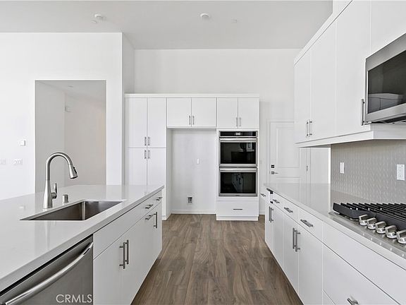 Spacious Layout: Open-concept design featuring a gourmet kitchen with double ovens and a microwave, flowing into expansive living and dining areas.