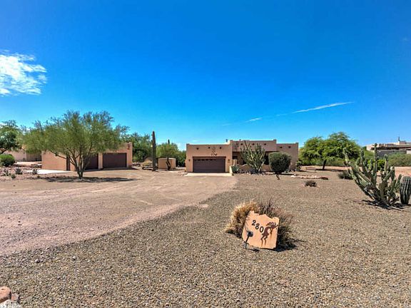 WOW! Situated on 1.25 acres of well thought out land with incredible Superstition Mountain views, this home has it all. Saltillo tile welcomes you inside. The eat-in kitchen features honey oak cabinetry, stainless steel appliances, a large pantry and you can enjoy mountain views while you eat. The living room is bright, open and perfect for entertaining w/double sliders to the patio. The spacious master suite is complete with double sinks, a walk-in shower and an exit to the backyard. NO HOA, detached 3 car garage, room for toys and animals! Schedule an appointment to view today!